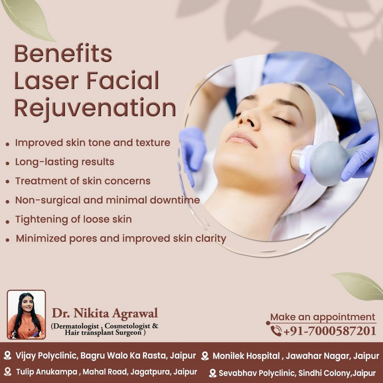 Dr. Nikita Agarwal, a renowned dermatologist, specializes in laser facial rejuvenation. Using advanced laser technology, she offers effective treatments to rejuvenate the skin, reduce signs of aging, and enhance overall complexion, helping patients achieve a youthful and glowing appearance.